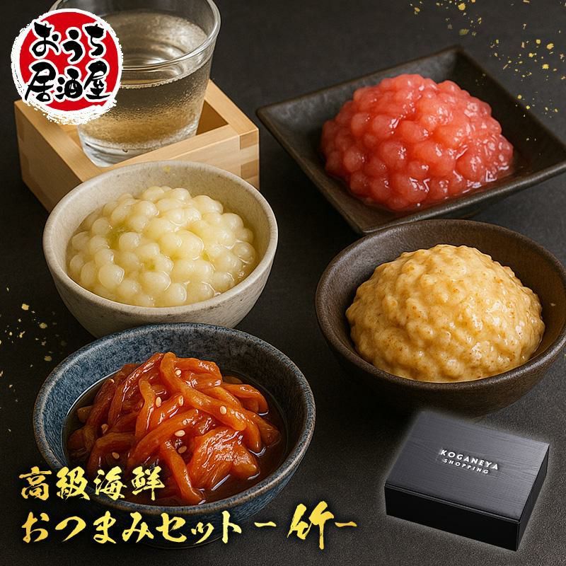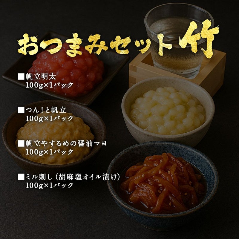 【期間限定30%OFF!通常4,800円→3,360円sale】 おつまみ 送料無料 黄金屋「高級海鮮おつまみ 4種 ギフト セット 竹 」 プレゼント 帆立 明太 するめ ミル刺し