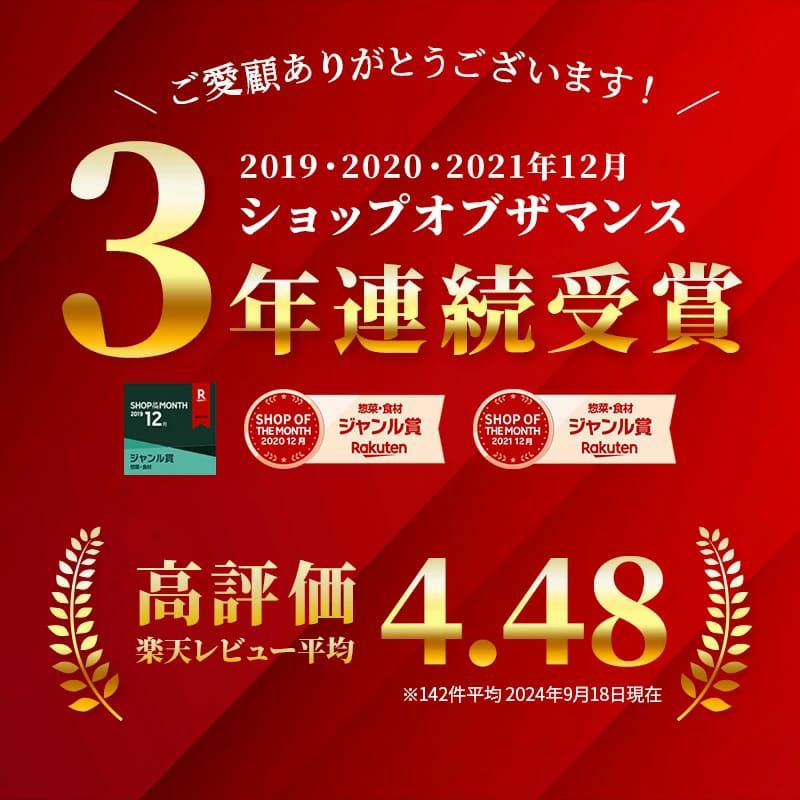 ・解凍する際は、お召し上がりの半日(約12時間)程前に冷蔵庫へ移し、ゆっくりと冷蔵による解凍をして下さい。