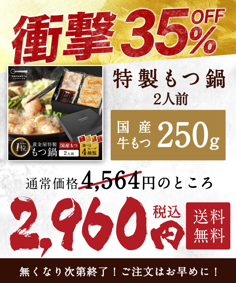 昨今のお取り寄せでは、安さを求め安価で手に入りやすい「海外産ホルモン」や「ミックスホルモン」を使用する店が多い現在、黄金屋の『特製もつ鍋』は、すべて新鮮で上質な国産牛もつ(牛小腸)のみを厳選して使用しております。