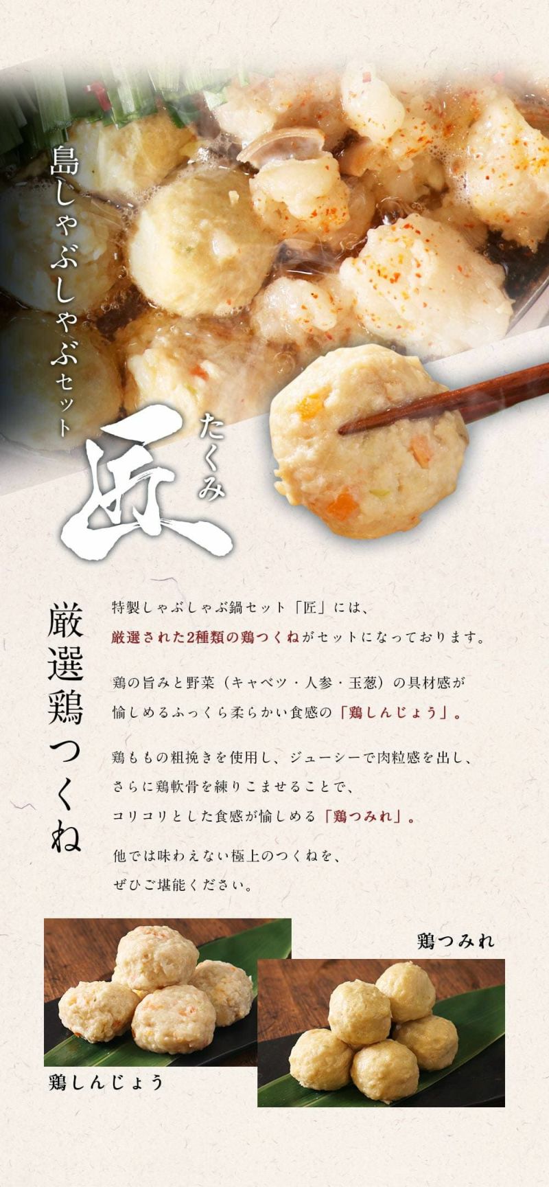 島しゃぶしゃぶセット匠 2~3人前 合計600g(金アグー豚 300g+厳選鶏つくね300g)